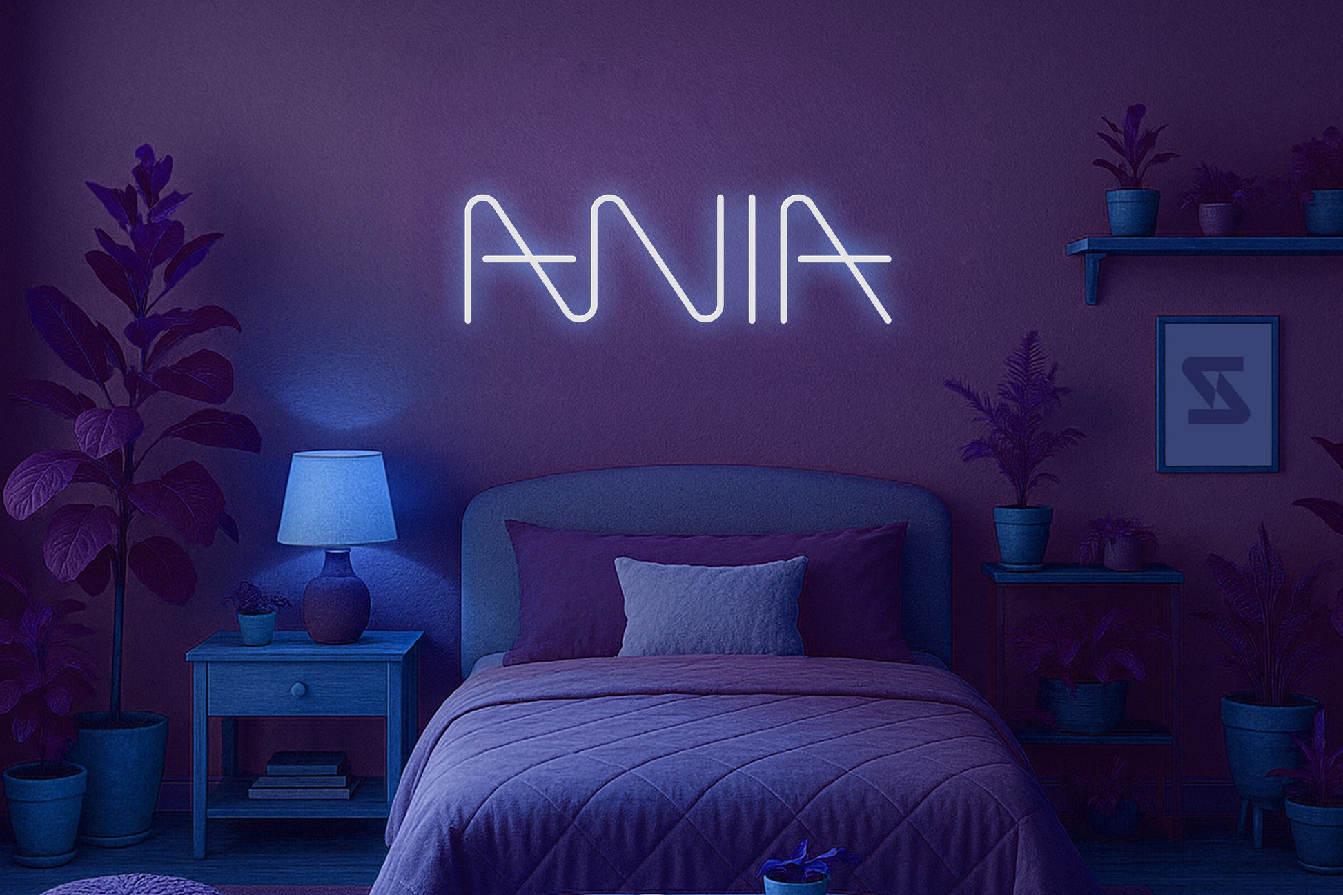 Neon LED z imieniem zaprojektowany jako element nowoczesnego designu wnętrz.